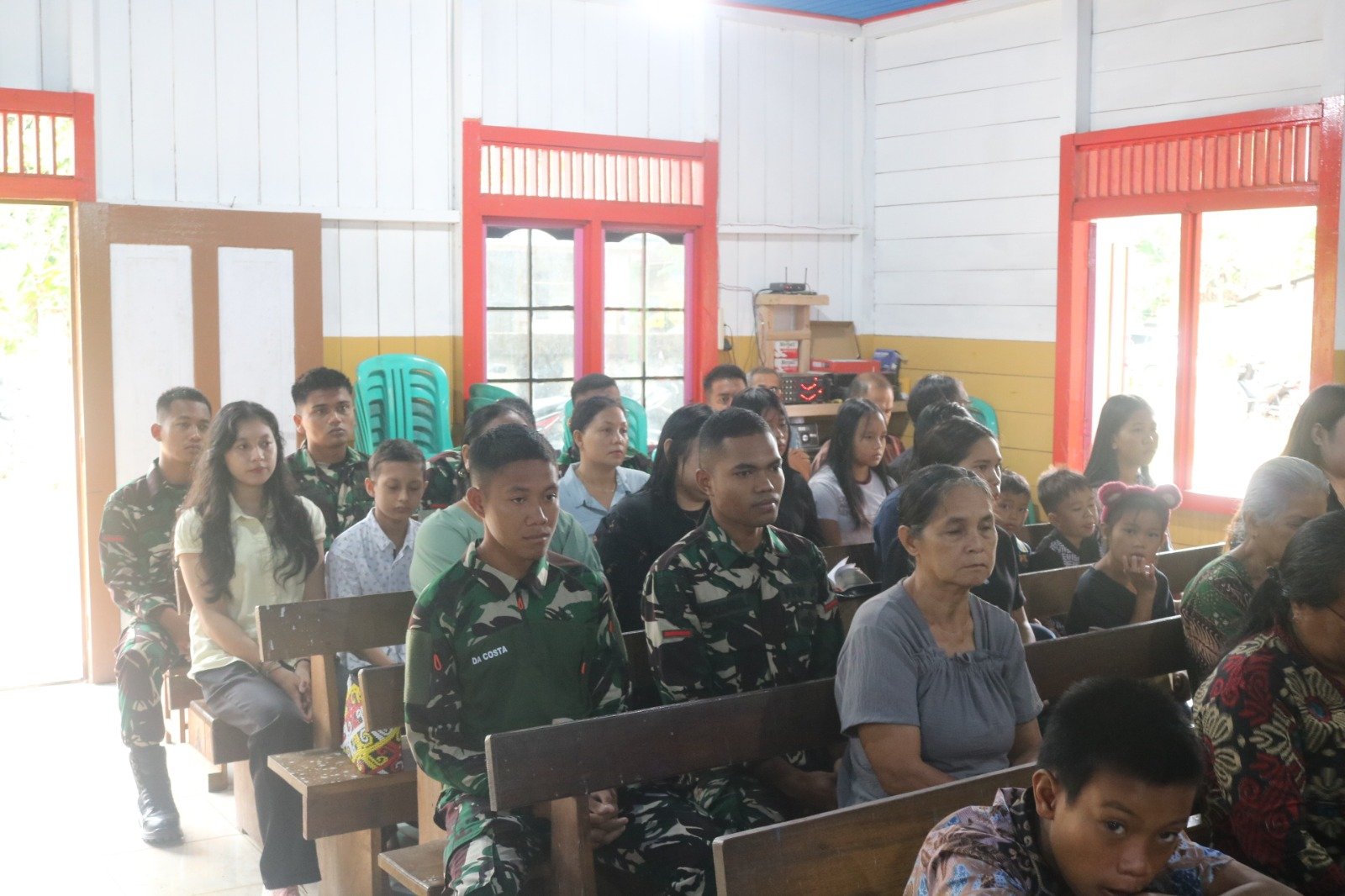 Kehadiran anggota Satgas TMMD di tengah-tengah jemaat menjadi pemandangan yang penuh makna. Tidak hanya hadir sebagai tamu, para prajurit turut mengikuti seluruh rangkaian ibadah dengan tertib dan khusyuk, menyatu bersama umat dalam doa dan pujian. Kebersamaan tersebut menjadi wujud nyata kemanunggalan TNI dengan rakyat dalam kehidupan sosial maupun spiritual.
