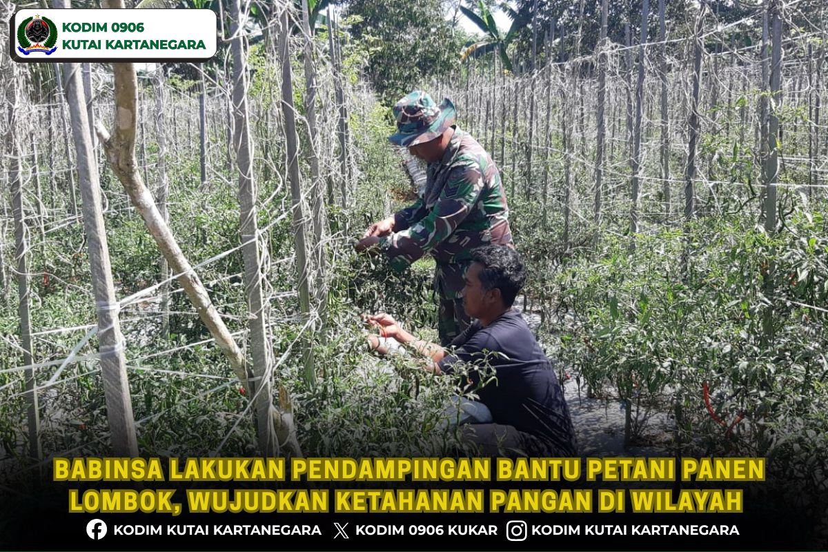 Kutai Kartanegara. ungkapfakta.net- Anggota Babinsa Koramil 0906-08/Muara Kaman Serka Nurkholis yang selalu aktif di lapangan turut membantu petani yang ada di wilayah binaan dimana Babinsa turut membantu memanen tanaman lombok dilahan milik bapak Edi bertempat di Desa Panca Jaya Kecamatan Muara Kaman, Rabu 22/4/26.