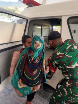 Koramil 1714-01/Mulia Menjadi Pelindung Rakyat Dampingi Evakuasi Korban Menuju RSUD Nabire