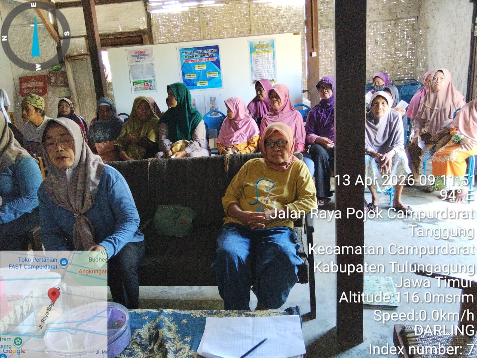 Kegiatan terbaru dilaksanakan pada Senin, 13 April 2026, di Dusun Pojok dengan diikuti sekitar 100 lansia. Program ini melibatkan kader kesehatan yang bekerja sama dengan bidan desa setempat.