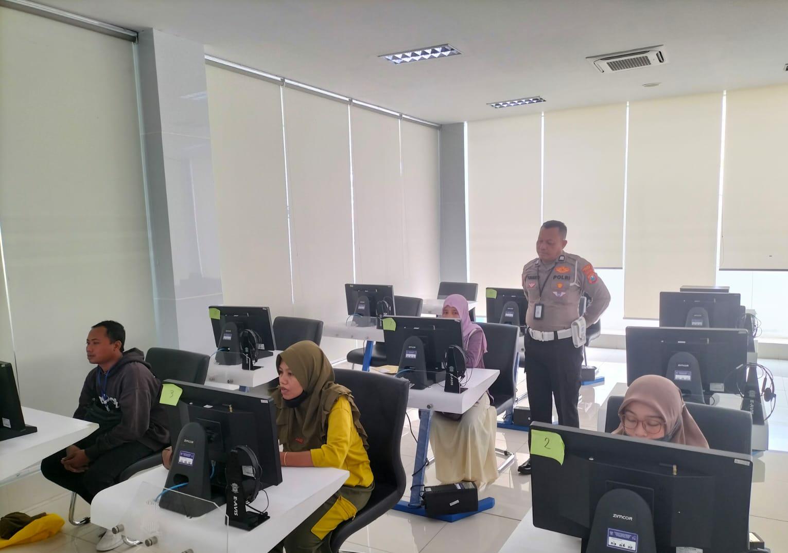 Petugas juga memberikan penjelasan mengenai tahapan proses pembuatan SIM, mulai dari pemeriksaan berkas hingga tahapan ujian teori dan praktik.
