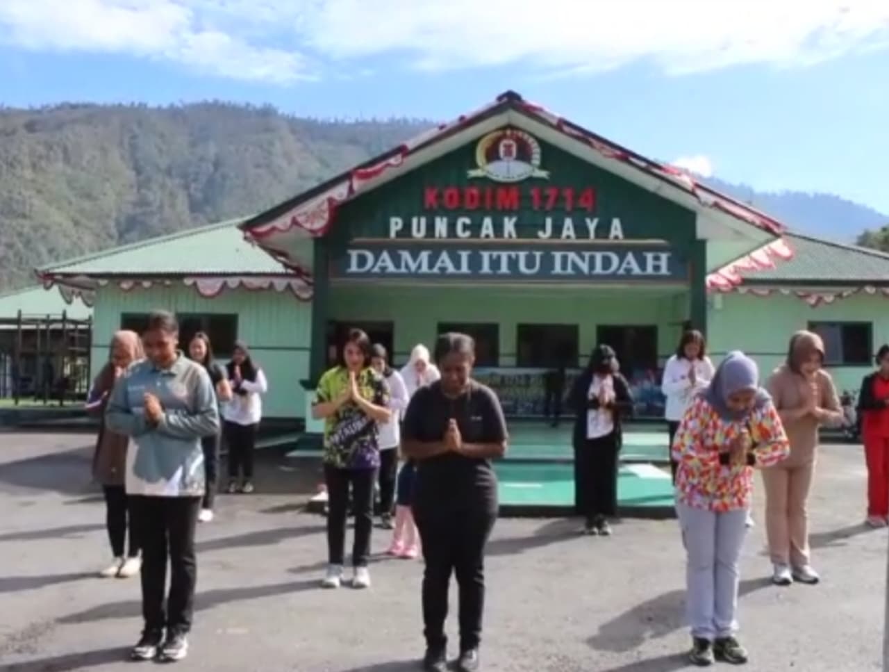 Puncak Jaya – Persatuan Istri Tentara (Persit) Kartika Chandra Kirana (KCK) Cabang XLI Kodim 1714/Puncak Jaya melaksanakan kegiatan senam Jum’at Sehat Bersama di lapangan apel Markas Kodim, Jum’at (13/02/2026).